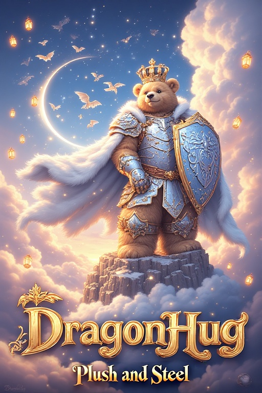 9:30 warm whimsical grand-orchestral power-metal vow, 160 BPM 6/8 extended long version, heroic male vocalist only, long magical intro 120s, whimsical build 150s, vow swell 180s, grand orchestral oath 300s, celeste/glass harmonica/glockenspiel/harp/golden brass/woodwinds/toy piano/timpani/strings/distant bells, playful yet reverent, Sir Snugglefort's fluffy oath, title: Oath of Fluff, band: DragonHug, album: Plush and Steel