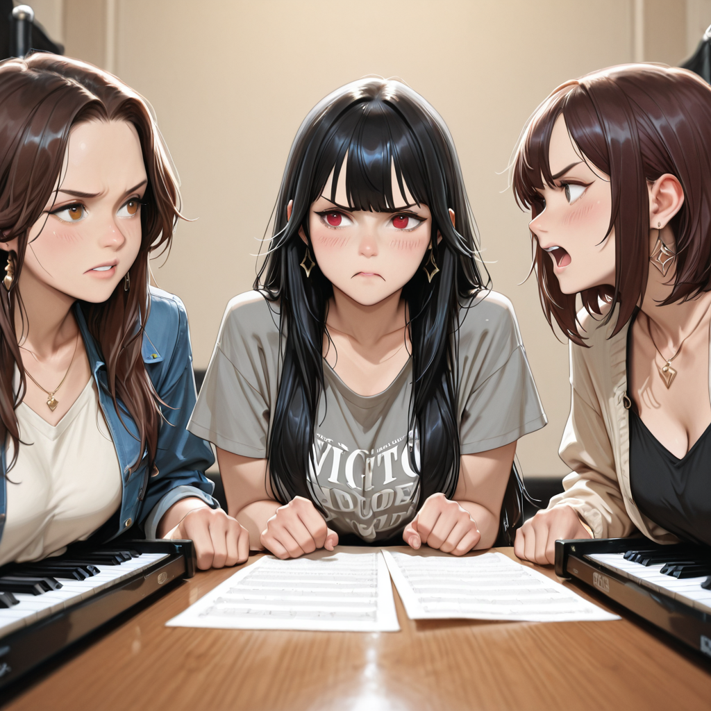 TRIDENT 80B, a J-pop-style song by a youthful female idol band, young female idol group song, a song by a young girl idol group, an upbeat song performed by a young girls’ idol group, Generate a melody in E minor