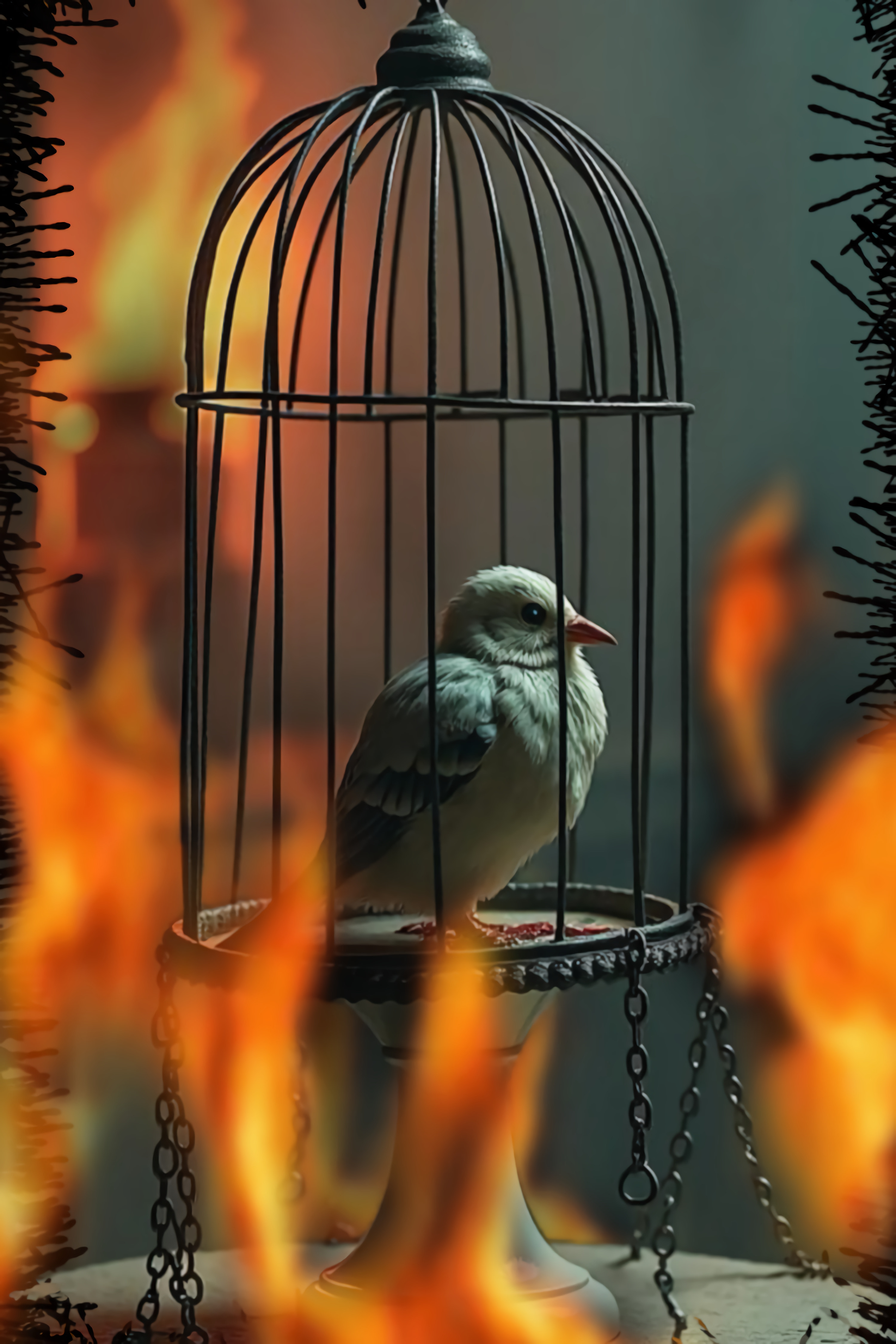 Rich female voice styled like a heavy metal singer trained for opera, Starts with acoustic guitar softly playing over cello, brush on snare percussion, in the first chorus the cello should grow more like a growling bass, with second version full drums kick in with violin fluttering behind the acoustic guitar and cello, female voice grows softer almost to whisper until the second chorus, second chorus is an explosion of sound with distorted cello and dubstep overtones, the interlude is a stark contrast that sounds like she is ranting over staccato strings and thumping electronic percussion, final chorus brings back the full sound for a triumphant finish