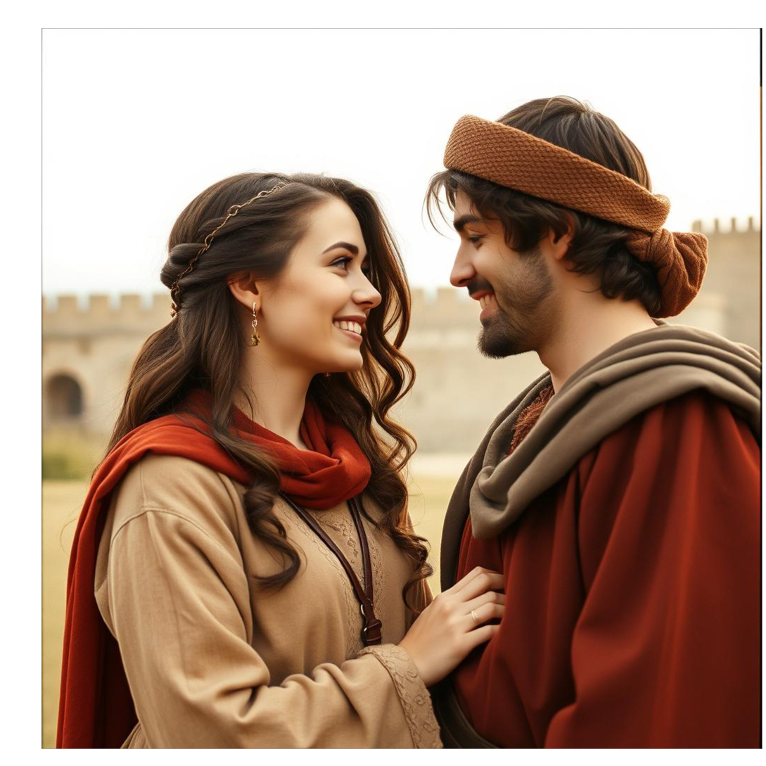 Create a medieval rock ballad featuring acoustic guitars, drums, bass, and a light choir, Include bagpipe or string elements for an epic feel, The mood should be dramatic, mystical, and emotional, like a song about longing, heroism, and love from ancient times, powerfully sung, rock-influenced yet ballad-like, ‑Ballad