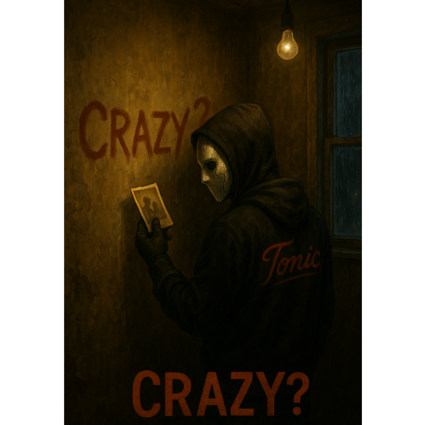 Dark trap fusion with cinematic psychological drama, deep 808s, crisp hi-hats, eerie ambient textures, reversed melodies, dramatic string stabs, and emotional piano loops, Vocals alternate between sharp, confessional rap and whispered inner dialogue (manic whisper), with sudden bursts of unhinged laughter (HAHAHA), Flow should vary between slow reflective pacing and double-time spirals to reflect mental unraveling, Include vocal effects like pitch shifts, ghost echoes, and glitchy stutters on key words like “myself, ” “reality, ” and “repeatedly, ” Overall tone is aggressive yet broken, like a diary set to detonate, Studio clarity, no Auto-Tune on verses, cinematic layering and intensity with trap energy and psychological depth