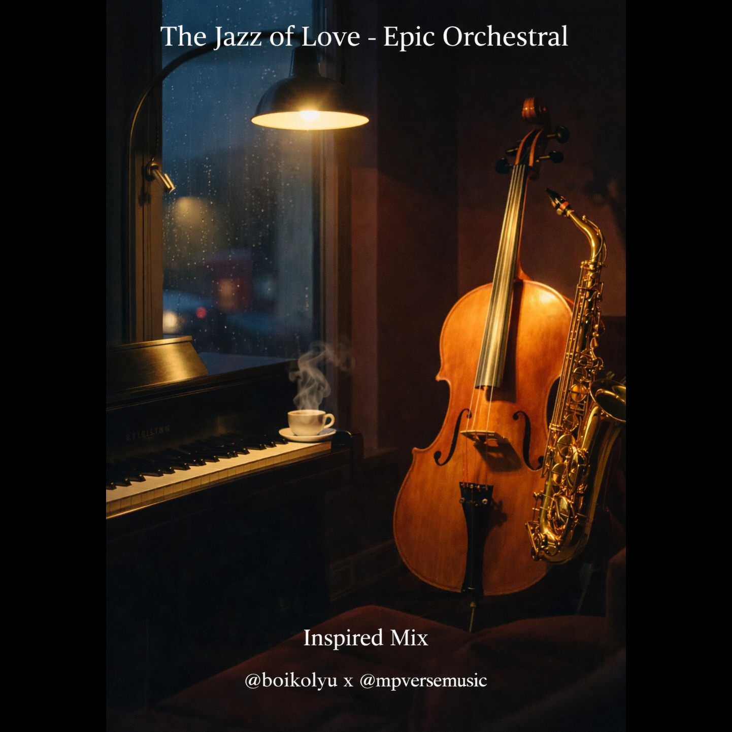 Epic Cinematic Orchestra, Dark Orchestral Jazz, 68 BPM, Grand Symphonic Arrangement, Powerful Intimate Male and Female, Soaring Strings, Deep Brass Swells, Cinematic Taiko Percussion, Tenor Sax Solo, Wide Soundstage, Dramatic, High-Stakes Romance, Neoclassical, Moody
