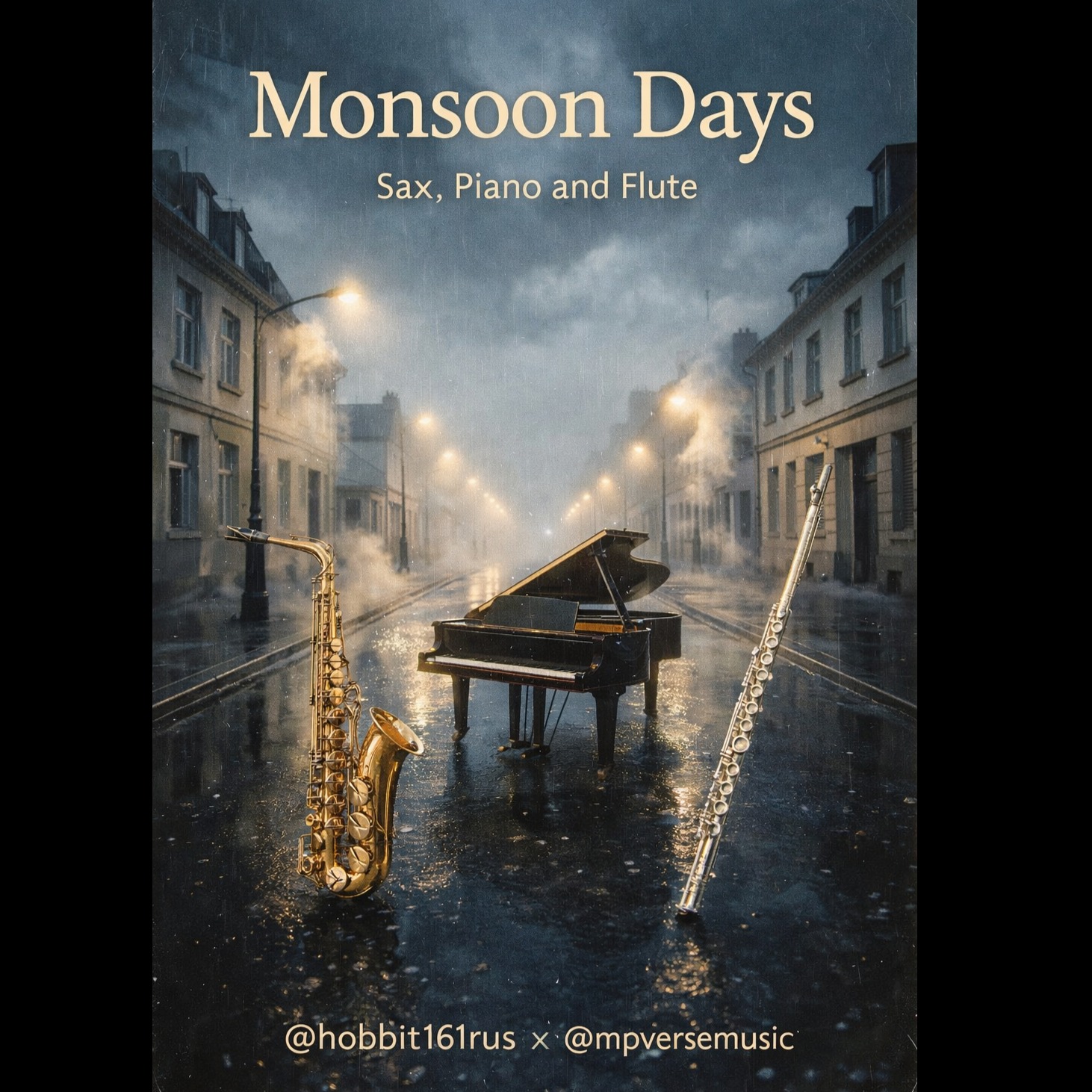 Lo-Fi, Orchestral, Chillhop, Rain Atmosphere, Muted Saxophone melody, Airy Flute, Piccolo accents, Minimalist, Cinematic, 85 BPM, Soft Thumpy Kick, Vinyl Crackle, Melancholic, Atmospheric, Subdued Strings