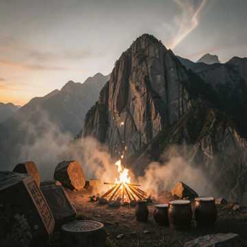 Global dark folk fusion, male and female vocal duet with contrasting roles, female spoken-chant lead, male deep harmonic responses, world percussion, ethnic flutes, string drones, minor key, shamanic ritual vibe, 76 BPM, incantation style, cinematic wide mix, clear vocal separation, climax cinematic orchestration, choir, keytars, accordion, banjo, ethereal synth, space synth, piano, sax, moody synths