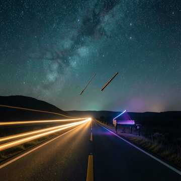 124 BPM, Major key, bright lo-fi chillhop, dusty piano keys, ethereal space synth, warm vinyl crackle, relaxed instrumental boom bap beat, crisp bongo percussion, dhin-chik-thakk groove, soulful saxophone, airy flute, mechanical car engine SFX, late night cinematic drive, upbeat, mellow beats