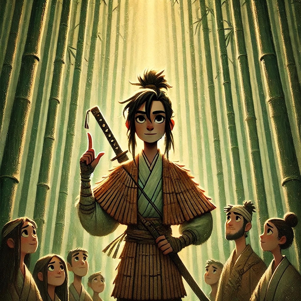 Disney musical, punk-folk, japanese folk instruments, taiko drums, forge sounds, raw vocals, rebellious energy, fantasy feudal Japan setting, bitter lyrics about unseen labor and stolen credit