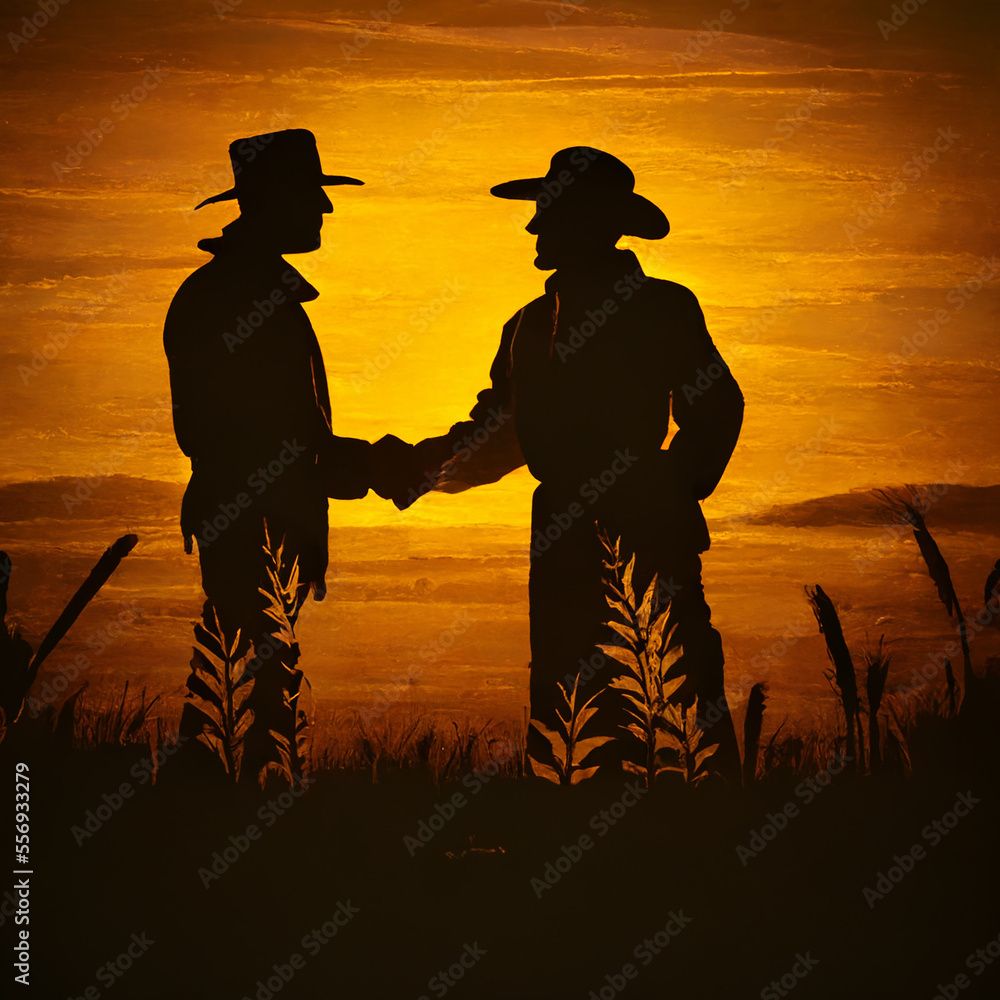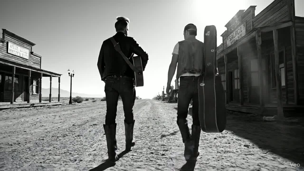 [Live performance] [Duet 2-male] [Harmony] folk grit blends with folk-rock verses use fingerpicked acoustic guitar, sparse upright bass, twangy electric phrases, and haunting harmonica, The chorus brings pounding [full orchestra], banjo, lush harmonies, and a soaring vocal, Slide guitar drenched in reverb bridges the sections, evoking the West