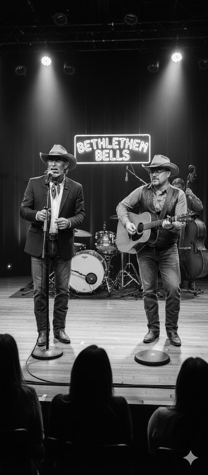LIVE In Concert The duet launches with commanding baritone over warm piano, muted strings, syncopated New Wave drums, gritty guitars, and pulsating bass, Verses stack tense low harmonies, glottal pops, and urgent tenor, Chorus erupts with sharp falsetto, expressive bent guitars, full orchestra, and surging dynamics, Bridge strips back to agile falsetto and clean guitar, The finale explodes into rousing country-punk/folk-rock: group harmonies, harmonica, lively ensemble interplay, and electrifying energy as both male deep-gritty and baritone vocals front a dynamic, high-octane close, country-rock
