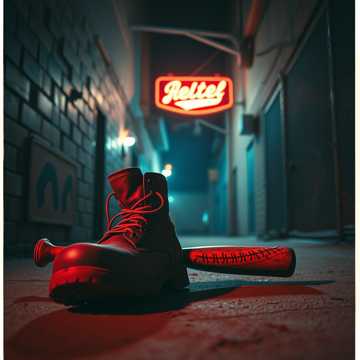 Aggressive Belarusian street anthem, Style: hard rock + metal + hip-hop crossover, Heavy distorted guitars, low-tuned riffs, punchy trap/boom-bap drums, deep 808 bass, industrial textures, Dark, gritty, violent urban atmosphere — night streets, concrete courtyards, danger in the air, Male vocal, rough and powerful, Verses delivered in hardrock flow with attitude and menace, Chorus shouted and chanted, gang-style, very energetic and intimidating, Occasional metal screams and growls for emphasis, Tempo medium-fast, head-banging, Mood: toughness, survival, respect, street authority, Theme: strong fighter ruling his neighborhood, no fear, underground legend, Language: Belarusian with short English hype lines (“Don’t mess with Tyson”, “Get ready to fight”), Production: with modern hip-hop bass and with stereo space and depth layers and spatial separation