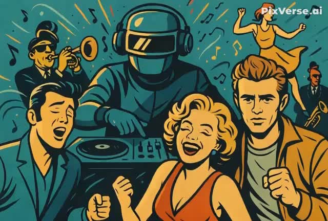 Ska Punk, EDM, A wild time-travel storyline, Cinematic, Cartoonish, Experimental, Infectious, Groovy, Fast ska guitars, punchy brass section, bouncing off EDM drops, wobbly synth bass & robotic voice samples