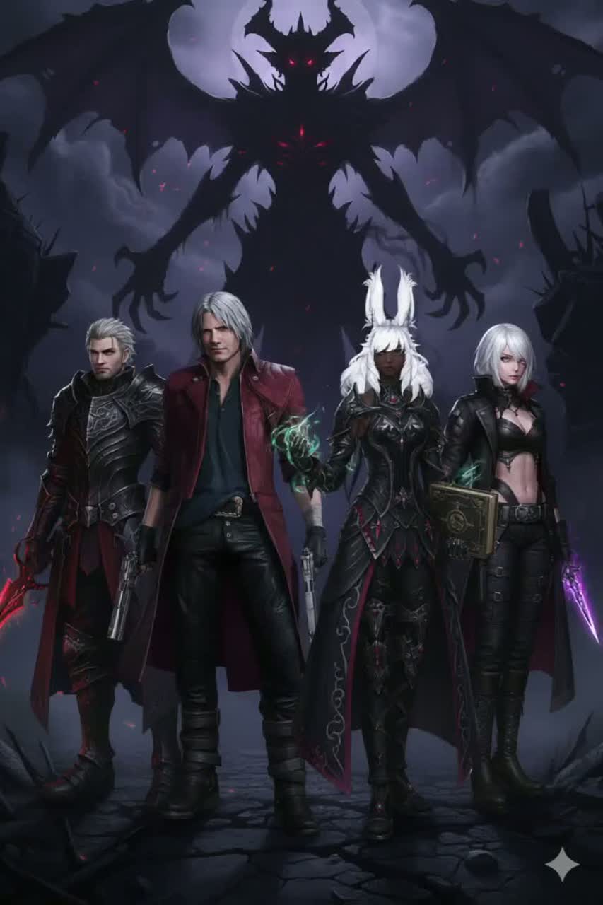 [Nyx LeCroix] — young, tough female with a smoky rasp and emotional grit; voice balances raw defiance and tenderness, [Midnight Duskraven]— sultry, smooth female with a lush tone and hypnotic control; sings with calm sensual power, [Dante ]— cocky, gruff male; weathered yet charismatic; delivers spoken and sung lines with smirking confidence, [Warrior of Light ]— strong, smooth male with heroic resonance and unwavering calm; commanding yet warm