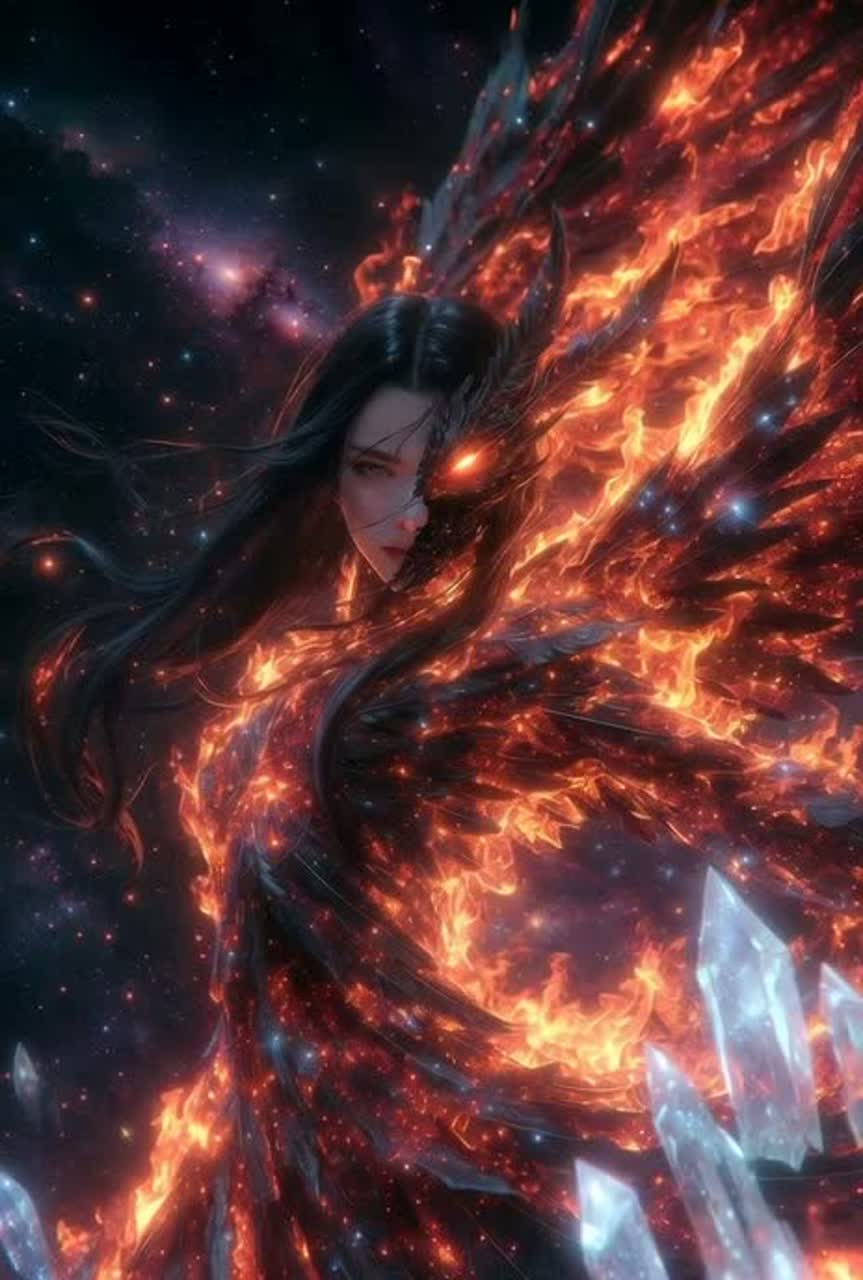 Dark fantasy cinematic rock-electronica fusion with gothic metal guitars, ethereal orchestral strings, and haunting choirs, Dynamic female duet leads with two male features, heavy percussion, choral ambience, and electronic undercurrents, Builds from mournful ballad to mythic operatic finale, Cathedral acoustics, demon-fire reverb, celestial distortion, Vocal Design: