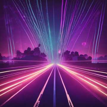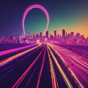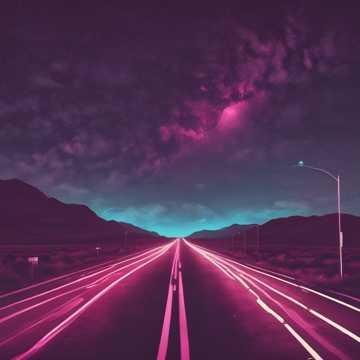 Create a high-energy driving track with pulsating basslines, dynamic rhythms, layered synths, and electric guitar riffs, Vibe: uplifting, adventurous, retro-futuristic, Perfect for road trips, city