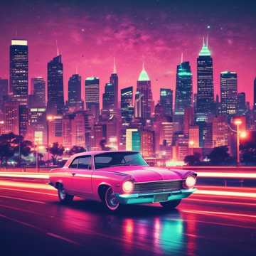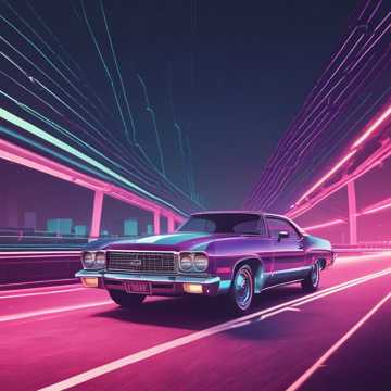 Generate a retro-futuristic synthwave track designed for the ultimate nostalgic driving experience, The music should feature pulsing analog synths, deep rolling basslines, and reverb-soaked drum machi