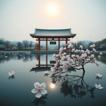 A traditional-style Japanese nursery rhyme melody with a light, playful tone — but hiding a deep, bittersweet emotion beneath, The music should feel like a child's game song: simple, repetitive, and gently off-kilter, as if sung while skipping or spinning, Use shinobue or shakuhachi flute as the melodic lead, airy and slightly wobbly, like a breath caught in wind, Support it with light koto plucks, subtle water cymbals, and soft wind chimes that shimmer like distant memory, No percussion, Tempo is slow-to-medium, swaying and organic, with small pauses — like a child remembering the tune by heart, The mood should feel innocent, eerie, and nostalgic — a reflection of mono no aware through a child’s eyes, No Western strings or cinematic pads, Keep everything minimal, natural, and traditional, Studio quality with soft reverb and stereo warmth, Imagine a rain child humming a forgotten song beneath misty sakura