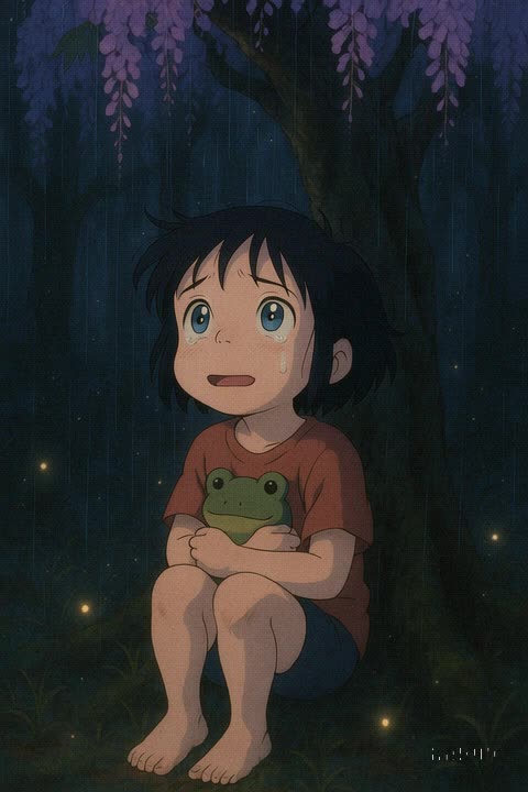 A traditional Japanese nursery rhyme instrumental, in the haunting style of Kagome Kagome, The rhythm is circular, gentle, and sways like a child’s game — 3/4 or 6/8, with hypnotic, chant-like repetition, Use shinobue or shakuhachi for a simple, plaintive melody — something a child could sing alone in the rain, Accompany with sparse, plucked koto and shamisen, echoing old village songs, Light hyōshigi (wood blocks) and furin wind chimes mark the rhythm, like a ritual or game, Avoid modern pads or cinematic strings — this should feel ancient, folkloric, and handmade, Add soft suikinkutsu droplets or light rainfall textures to evoke the Rain Child’s presence, Tone: eerie yet innocent — a rhyme with deeper sorrow hidden beneath playfulness, Every note should feel like a memory repeating in circles, dissolving gently in water and wind, Studio quality, natural acoustics, ethereal space