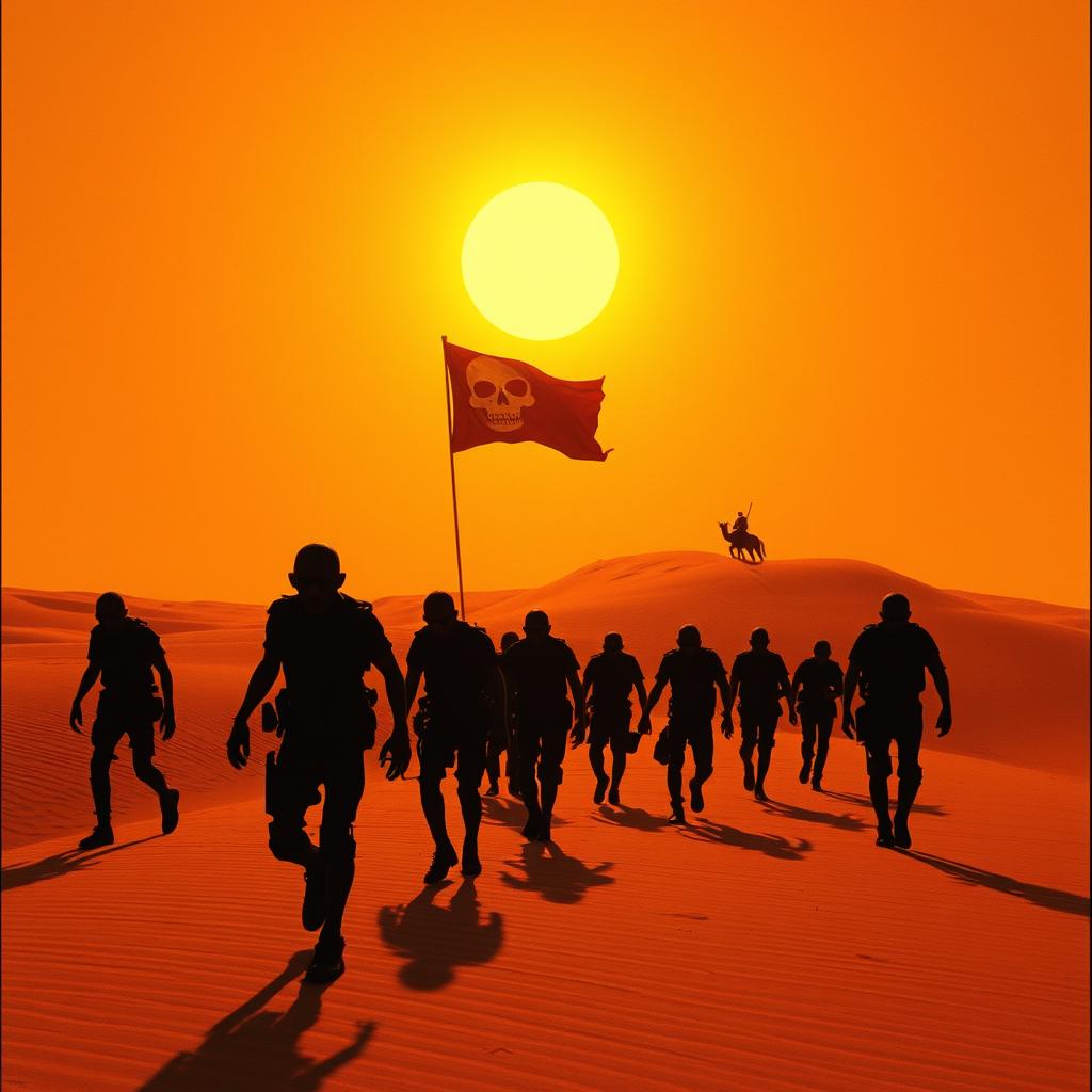 A powerful Darkwave/Gothic metal piece with Arabian vibes, breakdown, qanun, laud arabic, deep soaring deathcore male and female vocals with dramatic vibrato, Dark and cinematic atmosphere, ethereal vibes, echoing reverb, energetic drums, hypnotic doom guitar riffs, electronic, synthwave, psychedelic, violin