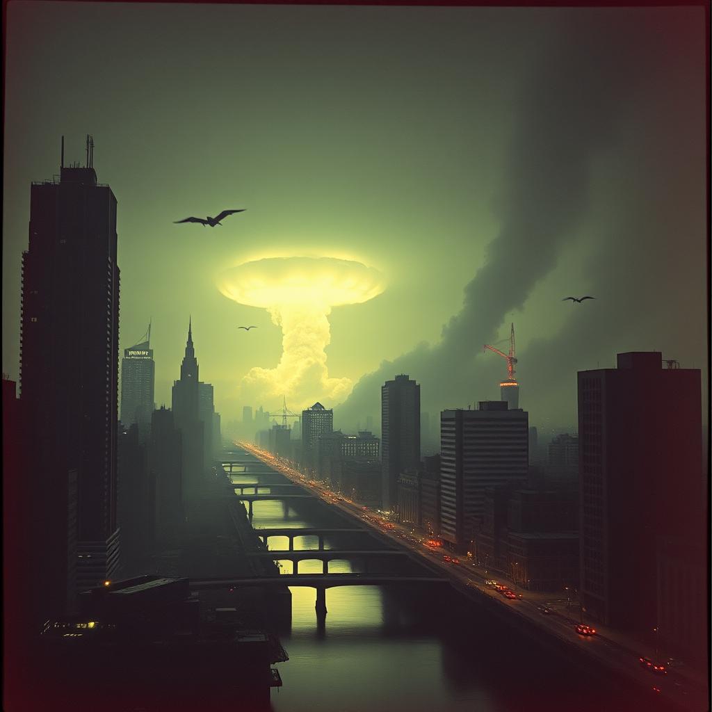 A powerful dystopic psychedelic rock/post punk/Darkwave/Nu metal piece with agressive soaring nu metal deep female vocals, harmonica, massive church organ at the intro, hard metal guitar riffs, deep techno bass and drums, electronic hall effects, oriental vibes, synthwave