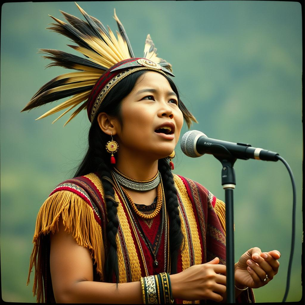 acoustic tribal female vocals, the song should feature plucked strings, a wooden flute should be incorporated as well as shakers and native drums