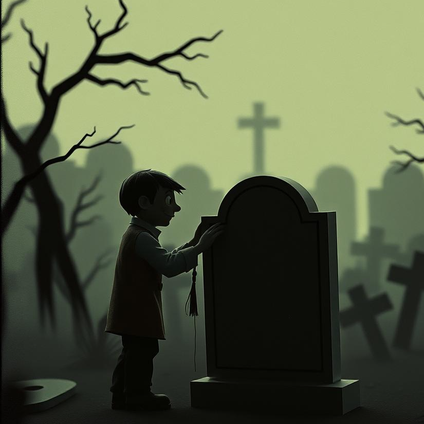 [Style: Orchestral Dubstep, Dark Cabaret Ballad] A tender, lyrical song from the perspective of Zero, the ghost dog, The instrumental is a fusion of a gentle, music box melody, soft piano, and a warm, atmospheric string orchestra, The dubstep elements are subtle and emotional: a deep, heartbeat-like sub-bass and delicate, wobbly textures that come in during the chorus to add depth, The beat is slow and heartbeat-like, The male vocal is soft, fragile, and full of yearning (not aggressive), It sings about loyalty, waiting, and seeing the world through glowing eyes, The mood is melancholic, loving, and hopeful, The structure is a simple verse-chorus, building to an emotional climax where the orchestra and bass swell together