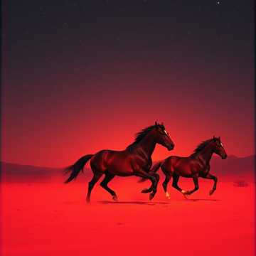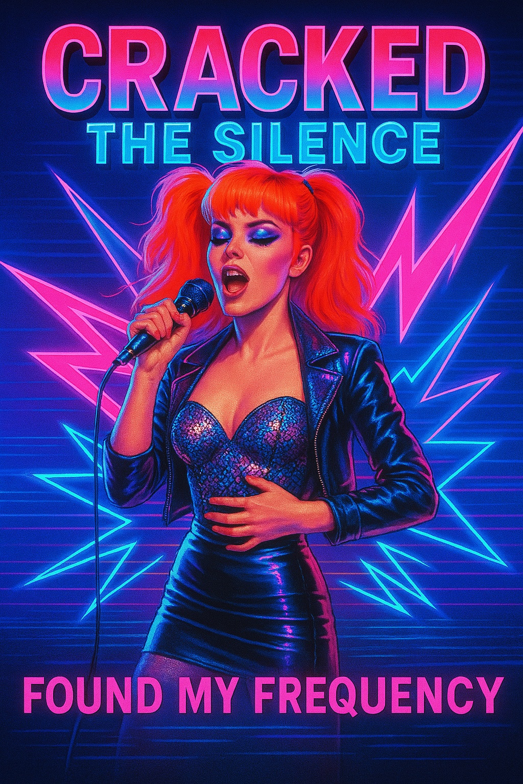Electric guitars blaze with sharp, driving riffs, kickstarted by pounding drums in classic 1980s hair metal style, Symphonic metal emerges with soaring strings and brass, layering tension, Darkwave synths pulse under anthemic melodic hooks, Harmonized guitar solos accent the bridge