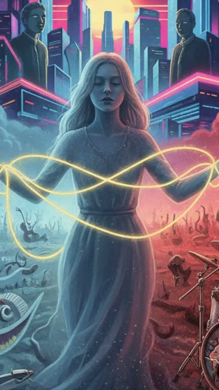 Opening with just whispered female vocals, soft violin, and folk-pop acoustic guitar, the verses move with sparse warmth, accented by warm bass and a subtle synth pad, Suddenly, distorted guitars and crushing drums erupt into screaming death metal growls before melting into anthemic 80s new wave choruses, where chant-like hooks soar, Sections jump between acoustic intimacy, surging new wave, and violent metal breakdowns, weaving madness and peace with explosive fiddles, relentless drums, and towering synths, creating a catchy, emotionally massive indie pop banger