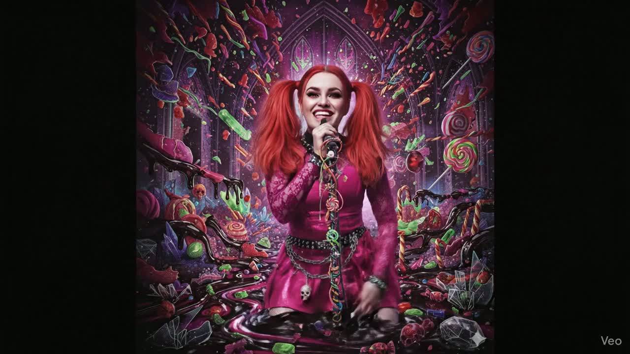 A modern mix fuses new wave pop-rock and death metal: tight disco drums, crisp funk-inspired rhythm guitars, and melodic analog bass lay the foundation, Sudden bursts of heavy, downtuned guitars and double-kick drums crash into choruses, Female alto leads with dry, husky verses and expansive, anthemic hooks, supported by harmony stacks, Short slapback delay and bright plate reverb create space, while tape-style saturation adds grit, Ad-libs remain intimate, bridging sleek verses and roaring metal climaxes for a punchy, stylish crossover