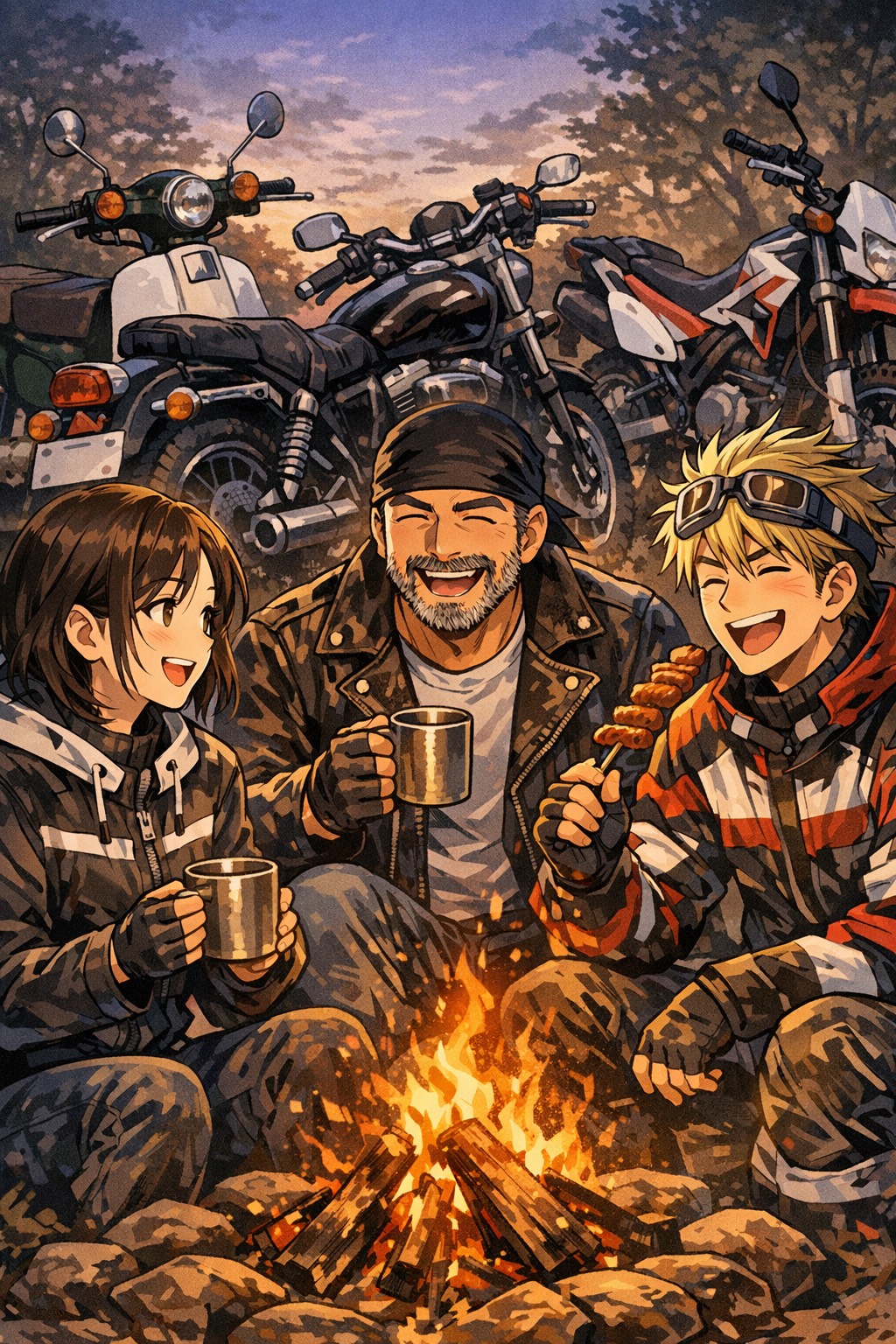 Russian Folk Campfire Feast Song, acoustic only, lively, earthy, rowdy, and fully human, Male group vocal with rough communal singalong energy, Feel like a hearty campsite drinking-and-cooking chorus, not pop, not cute, not polished, Use only acoustic folk instrumentation: