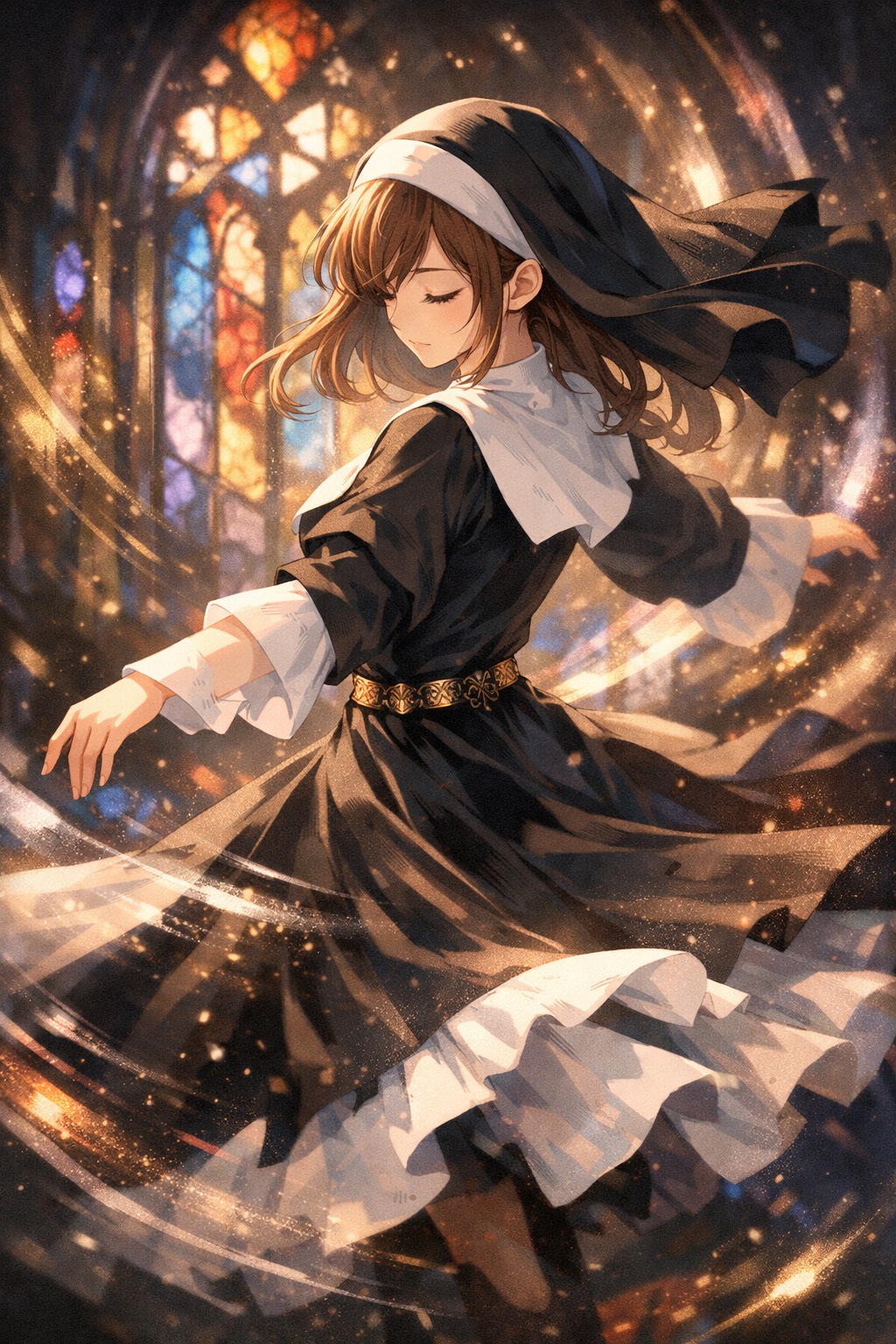 Dark Medieval Waltz, 3/4 time, 96 BPM, D minor, Cinematic chamber orchestra with a haunted ballroom feeling, Main groove: steady waltz pulse (oom-pah-pah) but elegant and restrained, Instrumentation: close piano waltz chords + low strings (cello/viola) carrying the pulse, double bass pizzicato, soft but tense violins for rising lines, occasional harp accents, subtle bass clarinet/oboe for cold color, distant church-like reverb only on instruments (vocal stays intimate), Lead vocal: female vocal, close-mic, breathy and fragile in verses, controlled intensity in chorus, minimal vibrato except long notes at emotional peaks, Key moments: before each “やめる——”, insert a brief half-beat hush (micro-silence) so the word hits like a ritual breaking, Bridge “……わたしは, こわい, ” is almost spoken/whispered, then the waltz returns, Final chorus: widen strings + add a faint mixed choir “Ah” underneath (no lyrics), still waltz, more radiant but not triumphant, Mix: cinematic depth, clear vocal front, no mode