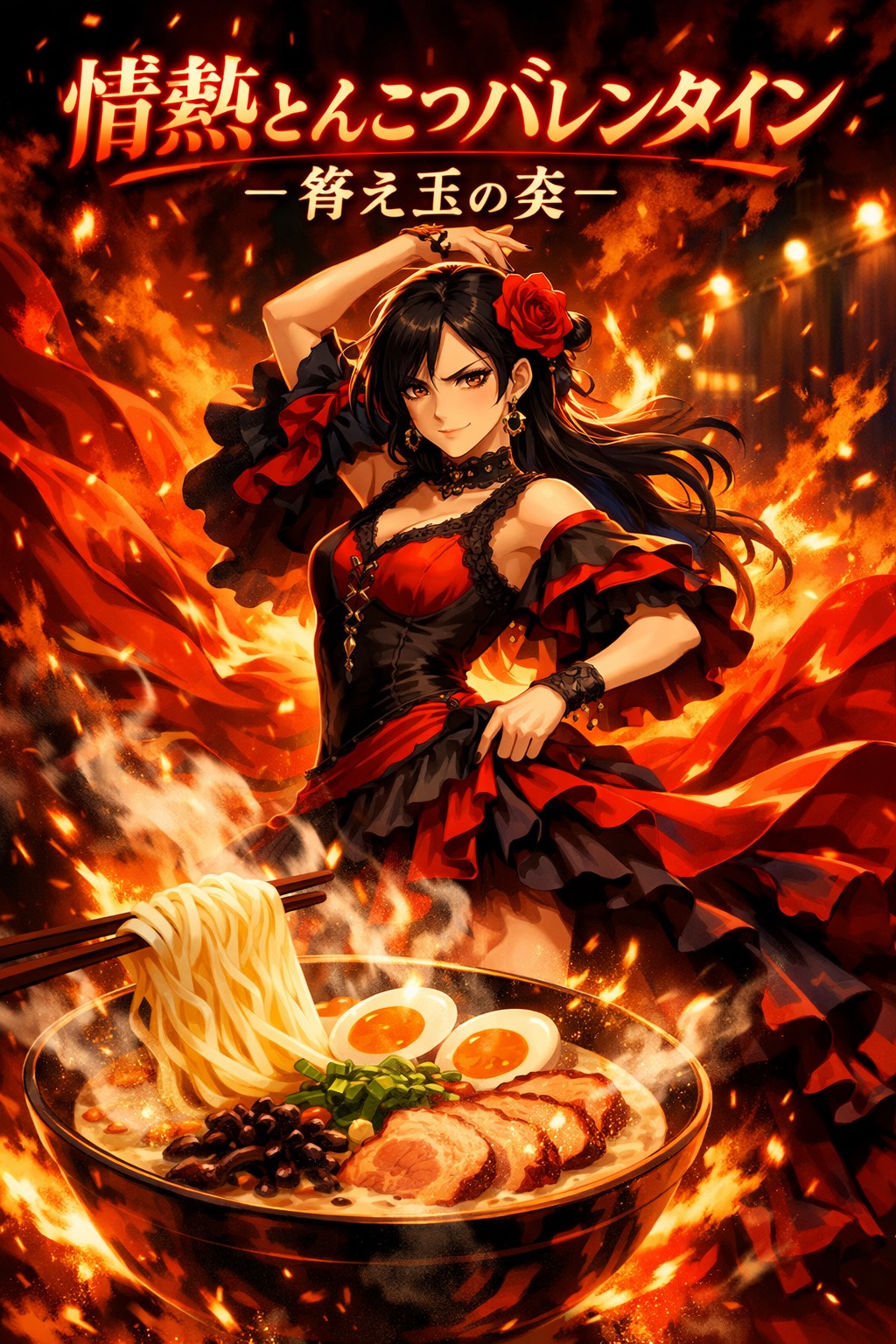 Dark Comic Tango, Theatrical Argentine-Inspired Tango, 108–116 BPM, Female Vocal Lead, Dramatic, Sharp, Proud, Slightly Sully But Controlled, Clear Japanese Diction, Elegant And Tense Tango Rhythm With Staccato Piano, Bandoneon-Like Texture, Pizzicato Bass, Sharp Violins, And Controlled Dramatic Accents, Verses Should Feel Intimate, Cutting, And Rhythmically Precise, With Stylish Restraint, Dry Humor, And Strong Phrase Endings, Chorus Should Open Wider With Grand Personal Drama, As If A Small Valentine Ramen Memory Has Become A Serious Emotional Duel, Lead Vocal Close And Forward In The Mix, With Noticeable Space, Tension, And Pause Between Phrases, Mood: Stylish, Bitter, Overdramatic, Proud, Darkly Funny, Slightly Sultry, Treat The Ramen Shop Memory Like A Petty But Unforgettable Romantic Incident Full Of Pride, Irony, And Fate, No Cute Idol Energy, No Hip Hop Bounce, No Bright Party Rap, No Soft Sentimental Ballad