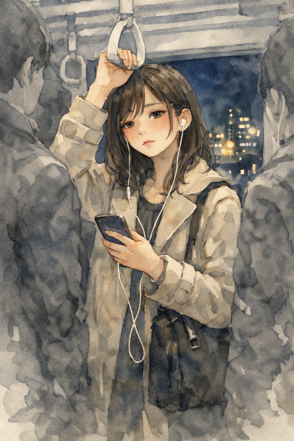 Male Vocal, Calm, slightly husky male voice, Very intimate, close-mic delivery, Mid-slow tempo, Minimal arrangement: soft piano, muted electric guitar, subtle ambient pads, Sparse instrumentation with intentional silence between phrases, Low dynamics, no big chorus lift, Breath and pauses are part of the rhythm, Emotion is restrained, inward, and unresolved, Modern Japanese ballad, realistic and understated, No heroism, No dramatic climax, No choir, No orchestral swell, No heavy drums, No electronic drops, A song of hesitation and inner monologue, Set in a quiet room after a phone call, Staying still, thinking, not moving forward