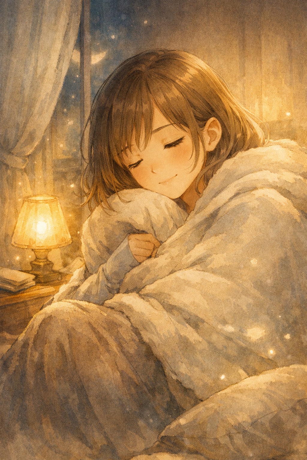 Soft Whimsical Bedtime Pop, Gentle Dreamy Cute Pop, Cozy Storybook Night Song, Soft Female Vocal, Warm Rounded Delivery, Sweet But Not Childish, Mid Register Focus, Melody should be smooth, mostly stepwise, easy to hum, with soft repetition and rounded phrase endings, The chorus should lift only a little and feel cozy, sleepy, safe, and reassuring, Fluffy, gentle, bedtime comfort with a soft storybook glow, No strong belt, no dramatic climax, no rock push, no shouting