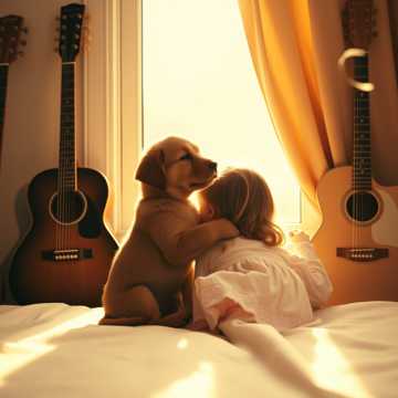 Theme: pure love between a little girl and her beloved puppy
