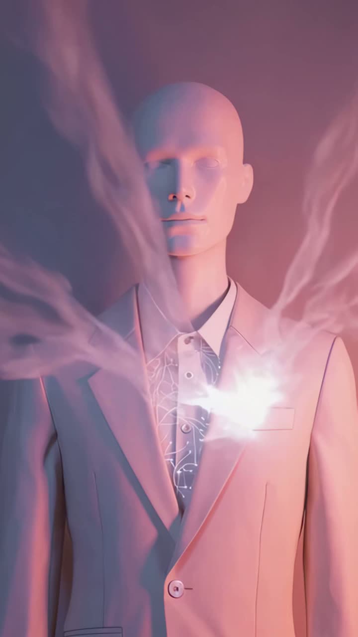 94 BPM ambient deep-disco, Felt kick with side-chain breathing, Rhodes tremolo under detuned analog pads; pulsing sub-bass shaped by soft LFO wobble, Sparse percussive ticks like heartbeats, Vocals intimate, layered human + vocoder blend (“I am what you made me feel”), Bridge dissolves into near silence with filtered radio voices, then rebuilds into shimmering resolution, Mix wide, pink light warmth, gentle tape hiss, Mood: reconciliation, wonder, human tenderness rendered in circuitry
