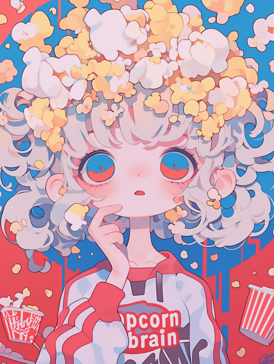 BPM 142, Create a psychedelic, emo, Dreamy Experimental, and highly addictive track with an endless loop feel, The sound should evoke the imagery of a microwave buzzing and popcorn popping, blending electronic textures with subtle glitchy effects, The mood is dark and downer, yet carries a strong, assertive voice expressing defiance and individuality, Vocals: sweet whisper girlish vocal