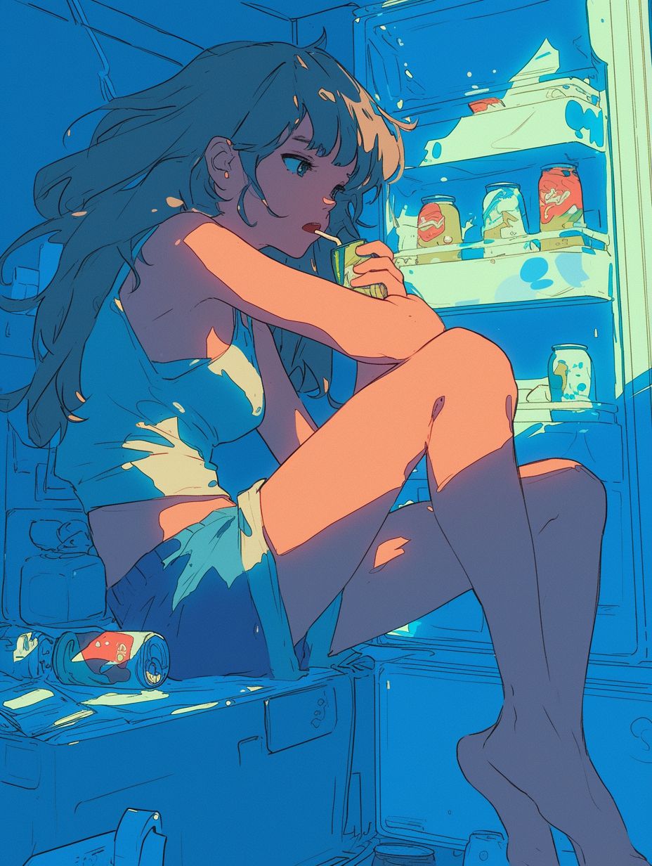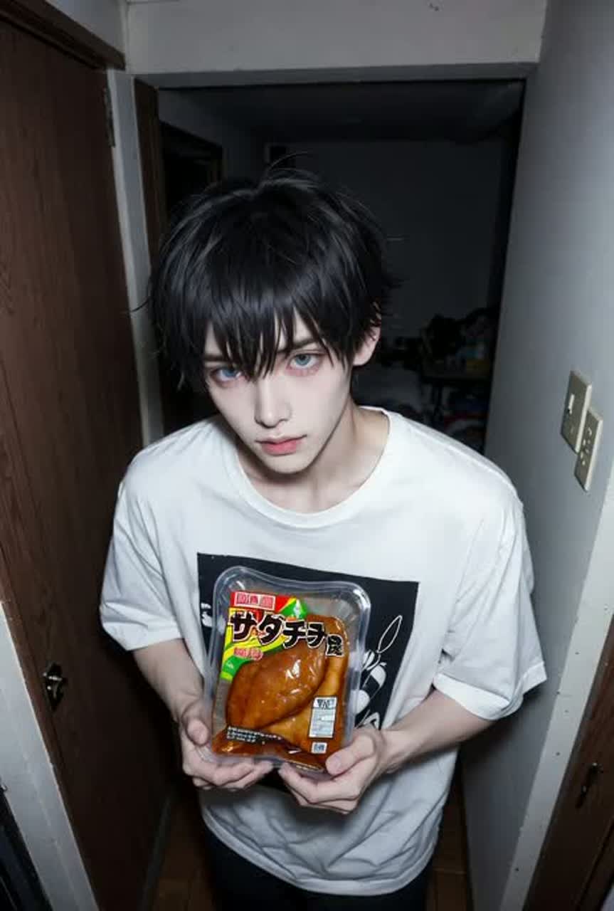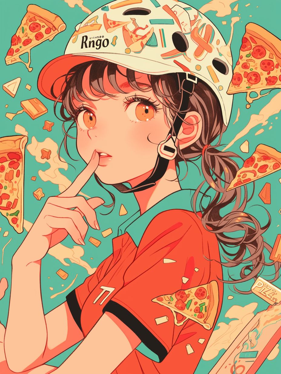 Create a fast-paced, catchy, cute anime-style pop song with playful yet slightly dark twist, in a lo-fi style, Tempo: 140-150 BPM, Drums: punchy, lively, slightly muffled for warm lo-fi texture, with subtle embellishments on off-beats, Bass: bouncy and soft-edged, occasional playful jumps, Synths: bright, colorful, whimsical stabs, glimmering arpeggios, short pitch-up effects, and rhythmic chopped notes for extra cuteness, Guitars: clean or lightly muted/distorted, layered for harmonic richness, sparkling riffs, Vocals: female, clear, fragile, sweet, playful, slightly intimate like speaking on the phone, Structure: Spoken intro → Verse → Drop → Chorus → Hook → Chorus repeat, Atmosphere: fun, upbeat, cute with a little edge; lo-fi warmth like a private phone call, with playful, animated energy, Effects: subtle sound effects for comedic or dramatic emphasis (doorbell, engine roar, pizza sizzling, vinyl crackle, tape hiss, short whimsical pops and chirps)