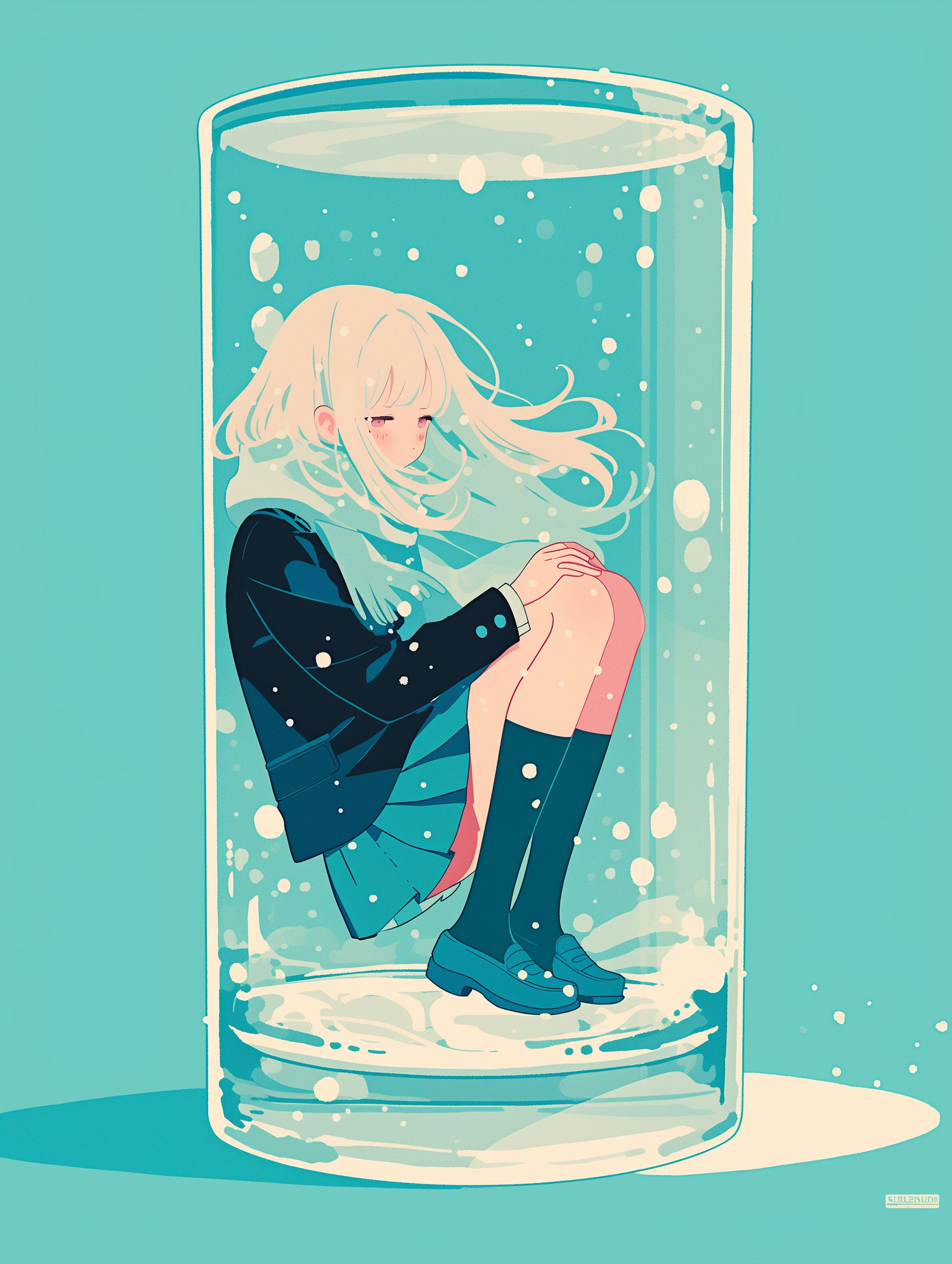 A melancholic Japanese song inspired by Vocaloid and lo-fi hip hop, fused with synth pop, Fragile, slightly artificial Vocaloid-style female vocals, bittersweet yet catchy melody, Lo-fi hip hop beat with irregular, unstable rhythm, dusty textures, and subtle tape hiss, Midrange piano chords with uneasy dissonance, combined with shimmering synth layers, Uncanny and unstable atmosphere, blending sadness with pop catchiness, like crying in the bath while the world feels distorted, Haunting yet strangely addictive