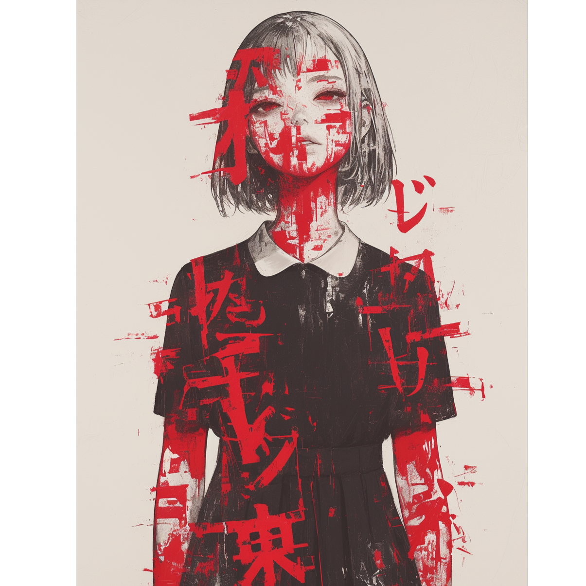BPM 142, modern Japanese alternative pop × hiphop-inspired talk pop × soft psychedelic, Groovy, rhythm-driven track with dry drums, tight bass, and crisp electric guitar riffs, Studio-quality, clean and punchy mix — minimalistic yet emotional, cool and human, no glitch or synth-heavy sounds, Female vocal, expressive but understated, precise diction, slightly ironic and conversational tone, Mood: witty, bittersweet, and introspective — blending spoken rhythm with melodic hooks, capturing modern communication and emotional disconnection, Lyrics theme: “文字化け (Mojibake)” — a pop song about miscommunication, irony, and the fragile warmth hidden inside digital failure