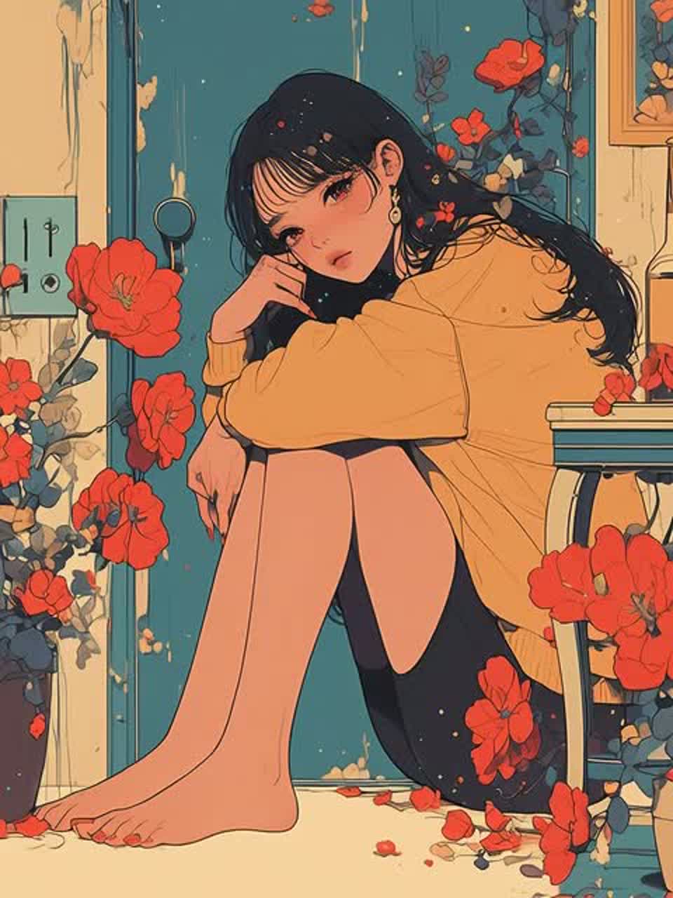 BPM 84, smooth and understated groove with brushed drums and soft syncopation — not bouncy but gently swaying, like breathing at midnight, Warm bass with subtle movement, clean electric guitars with dry tone and reverb tail, playing airy chords and gentle melodic phrases instead of rhythmic strumming, Add mellow electric piano and faint jazzy chord tensions (maj7, 9th, 11th) to create emotional depth and quiet sophistication, Keep the mix warm, analog, and slightly hazy — no sharp or bright sounds, Vocal: clear, sweet, and whispery female voice — delicate and expressive like a young girl softly singing at night; tender and bittersweet, with breathy emotion and gentle warmth beneath her sweetness, Mood: mellow, dreamy, and gently melancholic — a tender, romantic and fragile night filled with gentle emotion and soft sweetness, Atmosphere: stylish, emotional, and softly romantic