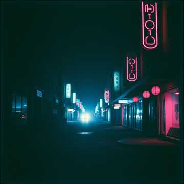Japanese, city pop, synth-driven, groovy bass, tight rhythm, neon-lit vibe, sax solo, retro 80s, urban nigh, 3min