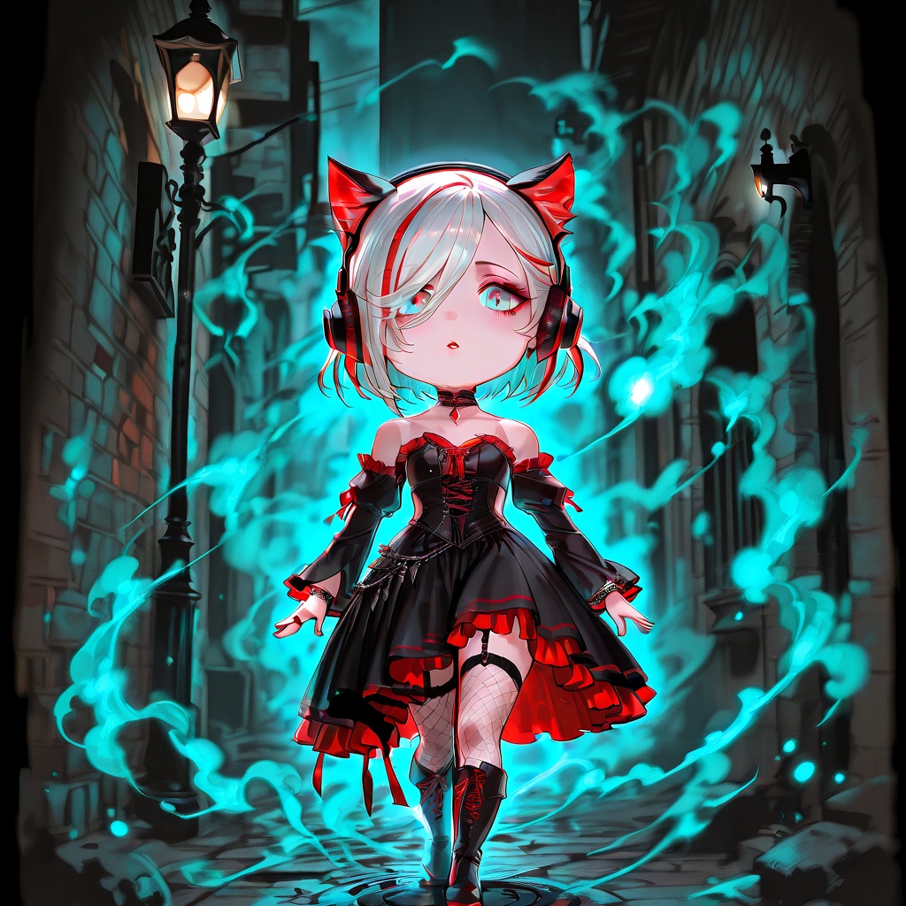 glitch witch house, electro swing, horror, glitch Forward Scratch, slowed, dark ambient, synthesizers, drum machine, Backward Scratch, heavy reverb, Occult/horror themes and samples, swag