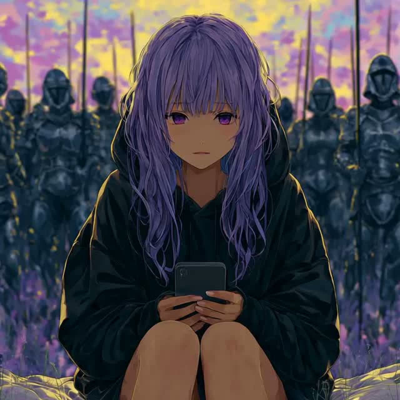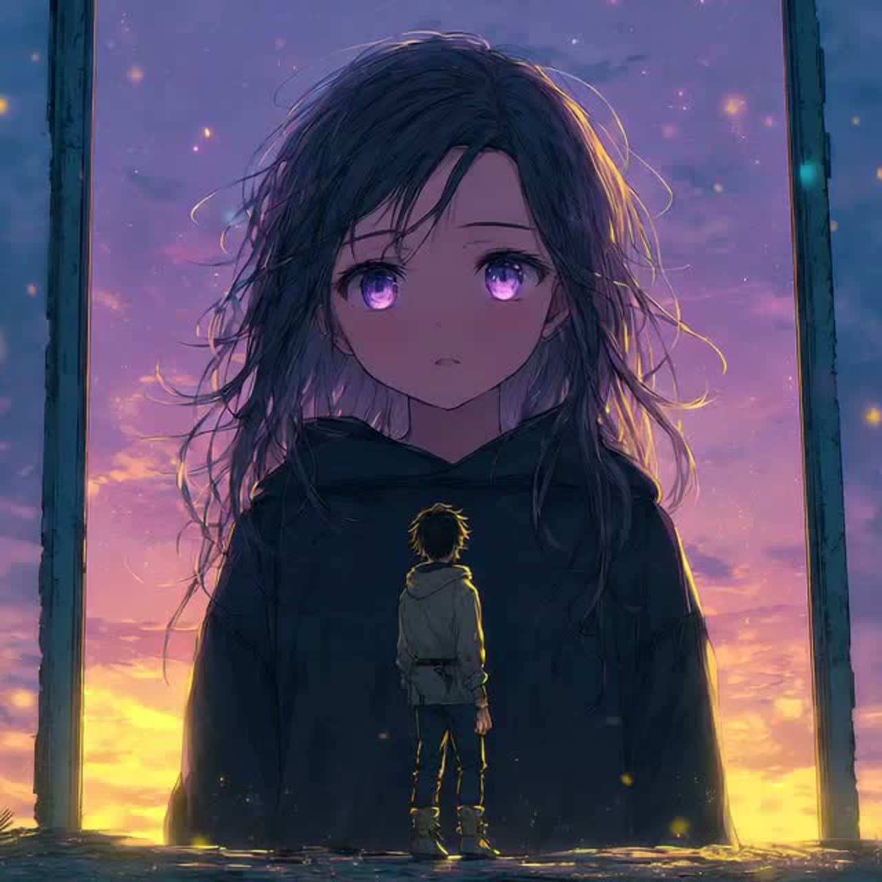 Texture: include distant wind sound, low hum, subtle layered ambient noise