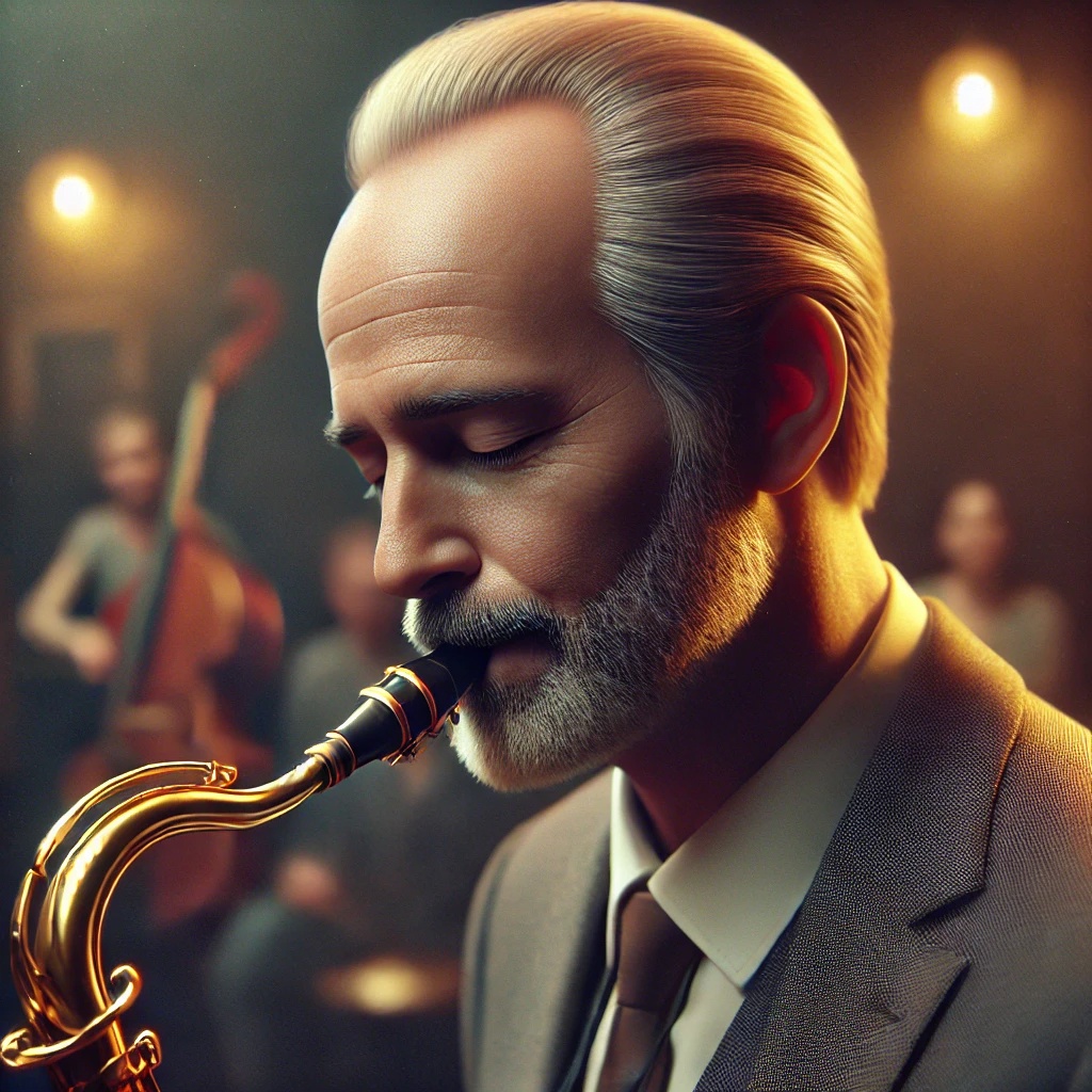 Jazz fusion, staccato, Tenor Saxophone, Clarinet, male singer, legato playing, 160 BPM