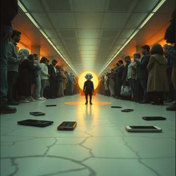 Driving Indie-Rock-Chanson, 120 BPM, heavy rhythmic drive, dry male baritone, deadpan delivery, Main engine: Fast circular Handpan-arpeggios & percussive Oud-slaps, Deep pulsing fretless bass, reverb-heavy pan flute (echo effect), No drums, High energy, clinical and metaphysical, crisp 70s studio mix