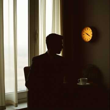 Indie-Pop-Rock, Modern Chanson, 100 BPM, dry male baritone, deadpan delivery, sophisticated irony, melancholic undertones, clean electric guitar, rhythmic walking bass, subtle Hammond B3 organ, crisp studio recording, high dynamic range, mature breathy vocals, up-front mix, 70s studio vibe