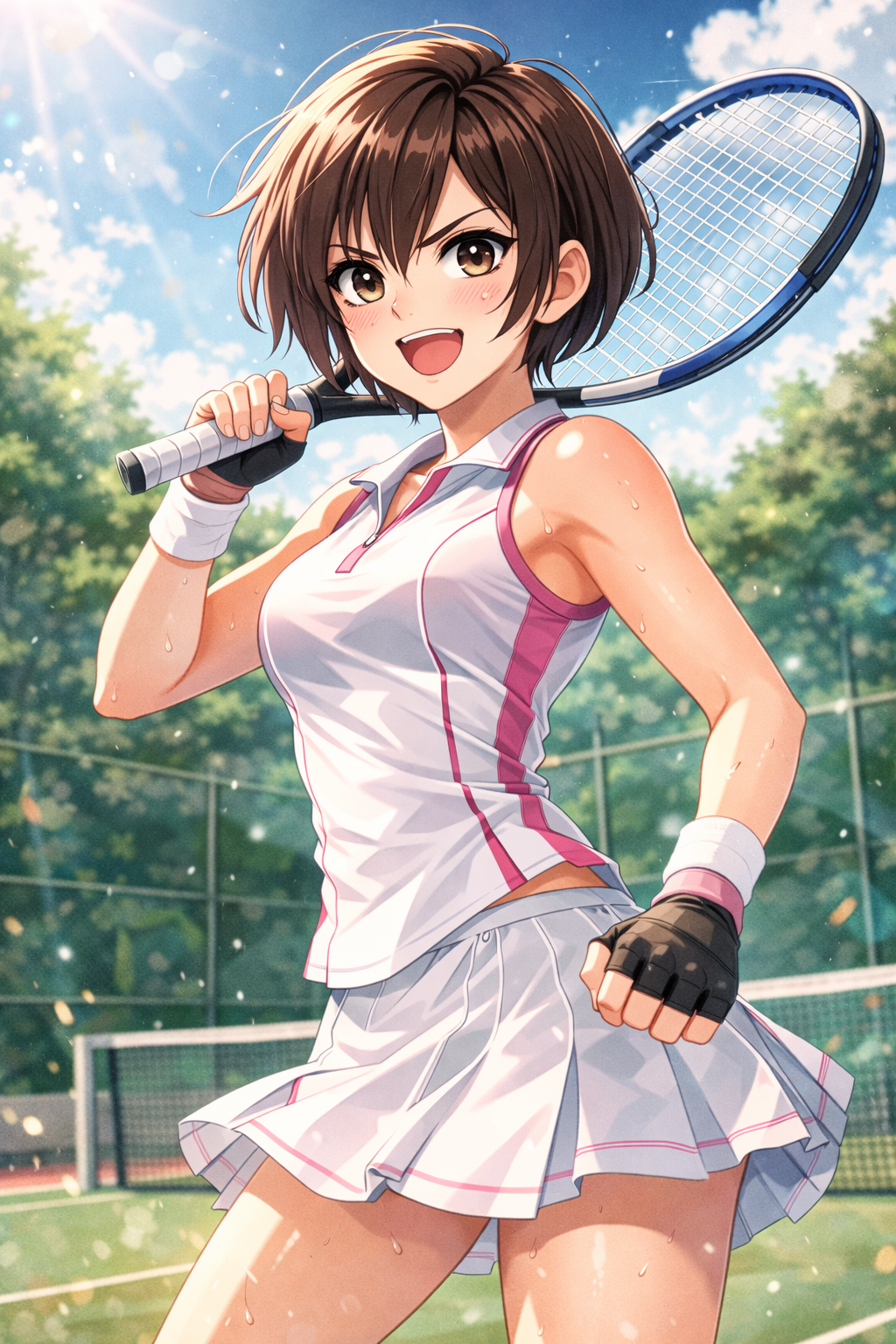 High-energy Japanese punk rock reminiscent of anime openings, With a fast tempo of 170-180 BPM, the sound is aggressive and uplifting, Distorted electric guitar, catchy riffs, loud bass, and powerful live-style drums, The explosive, anthemic chorus will have listeners jumping and pumping their fists, The low, slightly husky female vocals are confident and emotional, blending a shouty quality with a rawness, The mood is rebellious yet hopeful, brimming with positive energy