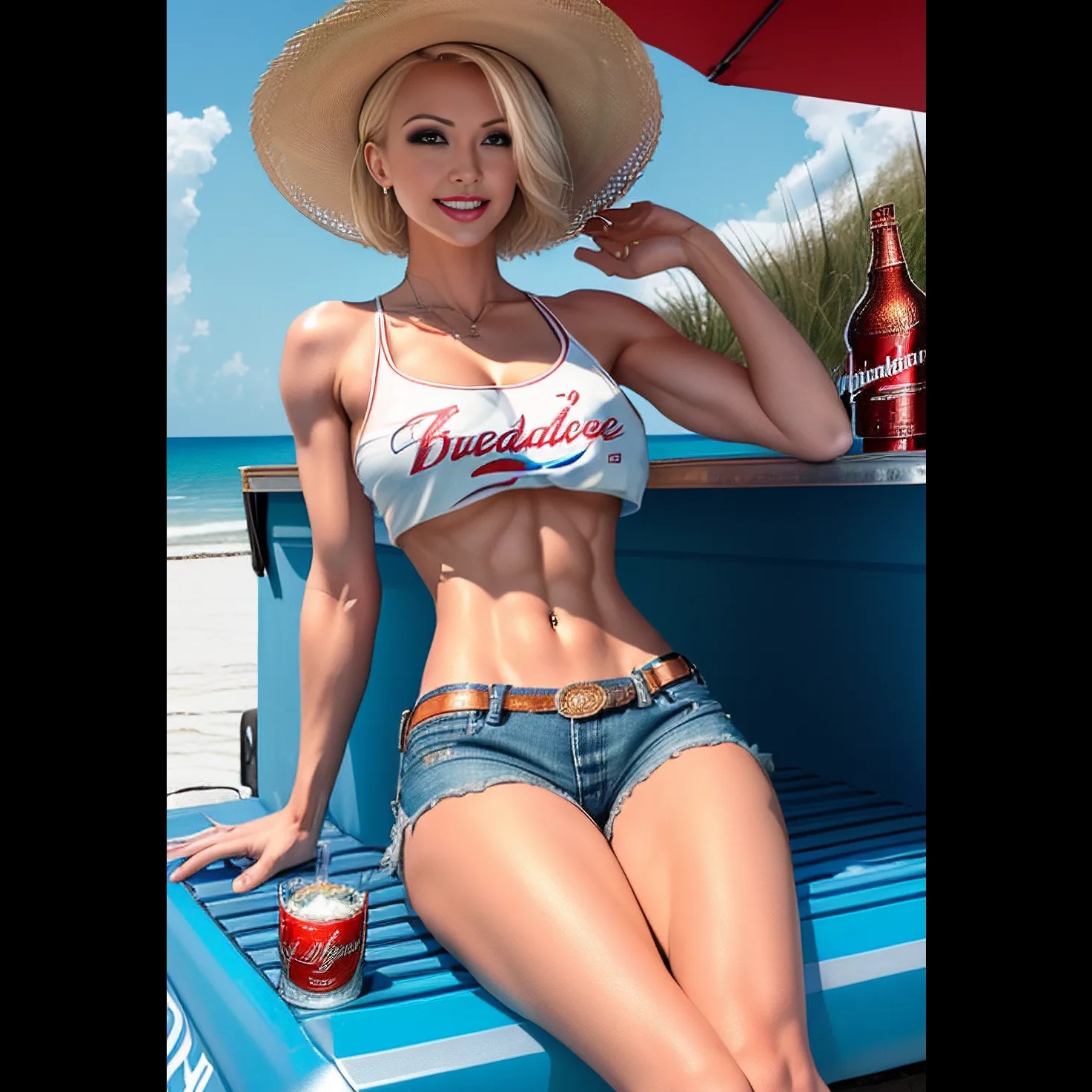 Experimental raunchy country rock, unapologetically promiscuous sexual female vocals, bold and explicit language, shredding country guitars, dance beat, carefree and wild, Dolby Atmos