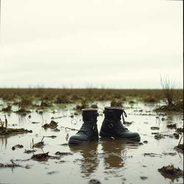 Atmospheric Industrial Folk Rock, 72 BPM, Gritty, warm tape-saturated acoustic guitar as the melodic core, intertwined with a melodic Fender Precision bassline, Rhythmic foundation of steady kick drum heartbeat and metallic, found-sound percussion (clanging pipes, shuddering sheet metal, wrench-on-pipe strikes), Deep, sub-bass industrial drone provides atmospheric bed, Arrangement metamorphoses from sparse, atmospheric verses to anthemic, full-band choruses with driving drums, layered electric guitars, and synth pads, then recedes, Male vocalist Hollis: gravelly, smoke-damaged, weary, glottal fry, raw, earthen, leathery, resonant, deadpanned, drawled, world-weary, confessional, reassuring, Background worker's choir in choruses, Dynamic arc from quiet introspection to cathartic release and back to resigned peace, ‑humming intro, ‑hum, ‑vocalise, ‑humming, ‑intro