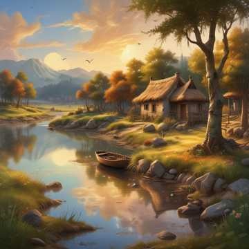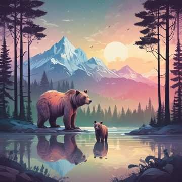 taiga, murmur of brook, green fir, bears, violin, calm, quiet, loving, kind, orchestral, atmospheric, unobtrusive music