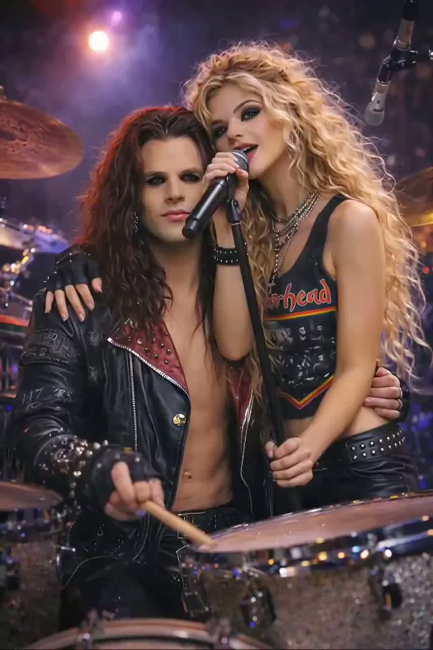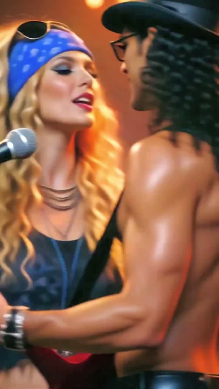 Fun, sexy, Flirty, playful, sweaty stage energy, neon lights, backstage heat, rock’n’roll swagger